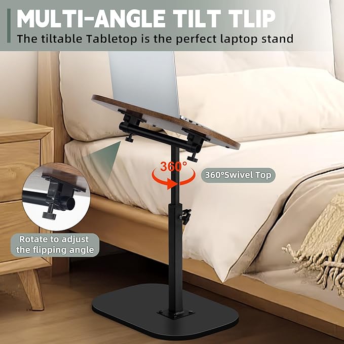 • Adjustable Sofa Table Height Perfects Your View: Customize this small side table from 18" to 31.5"—align with sofa arms for ergonomic laptop use. The 360° top spins to share or flips vertical to save space!