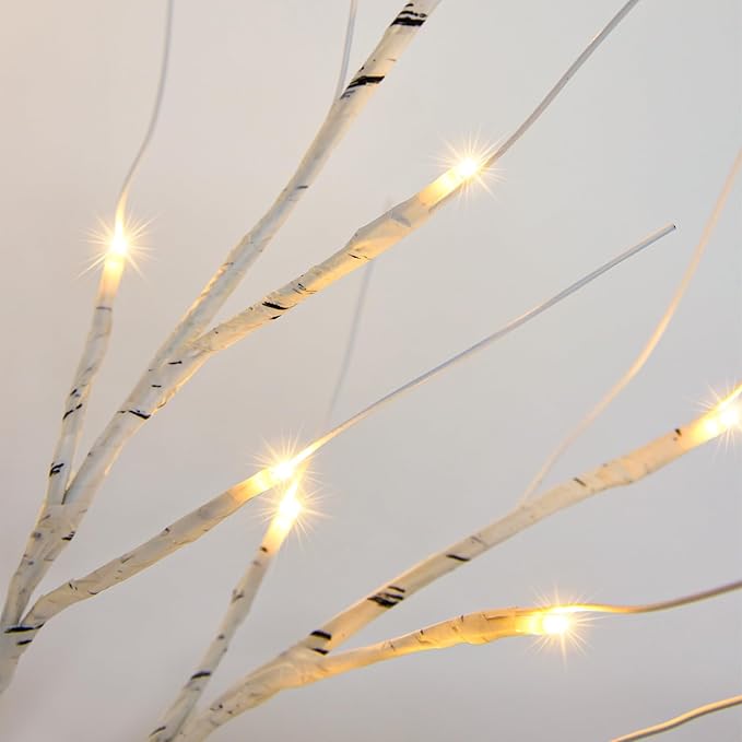 • Reusable Birch Tree Lights : Each birch tree feature 24 warm white LED lights. Flexible branches make it easy to hang ornaments. The bulbs have a long life of up to 25,000 hours, so you can enjoy them year after year