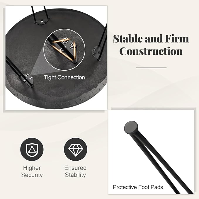 • [Stable and Firm Construction]: The heavy-duty metal frame with a black finish is rather premium, sturdy, and rustproof. With the metal pipes forming a high-strength tripod structure, the accent coffee table can support a large bearing capacity.