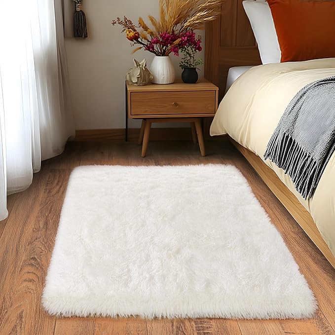 Small Area Rug, 2x3 Rug for Bedroom Shaggy Throw Rugs for Dorm Rug, Soft Shag Carpet for Kids Room, Plush Comfy Fluffy Bedside Rug for Home Decor Aesthetic, Cream White