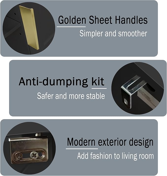 • 【Elegant and outstanding】The pure black tone and smooth surface make this console table with storage exude a modern and stable atmosphere, and it can be easily integrated into different home styles. At the same time, the golden flake handle can make this entryway console table more elegant and charming. The slatted frame at the bottom can also add a sense of layering to this console table with storage and make it more full of life atmosphere.