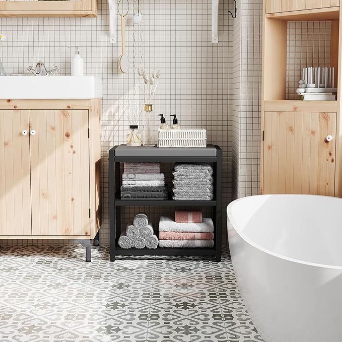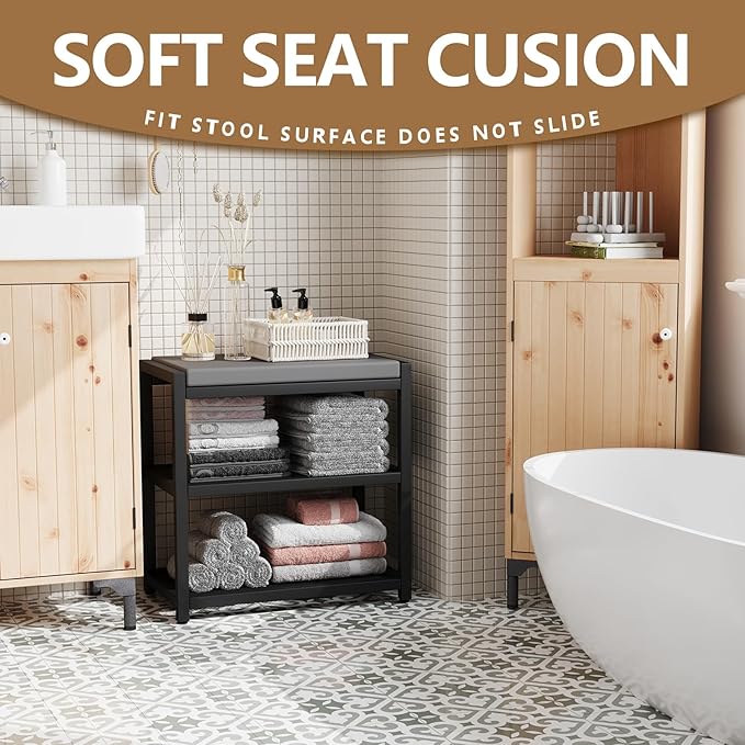 • Strong Support: This shoe rack bench is built with a robust powder-coated steel frame, offering firm and reliable support. Say goodbye to hard, stone-like stools and try our comfortable Small Shoe Bench! It not only provides durability but also has a maximum static load of 300 lb, making it a strong seating option for your needs.