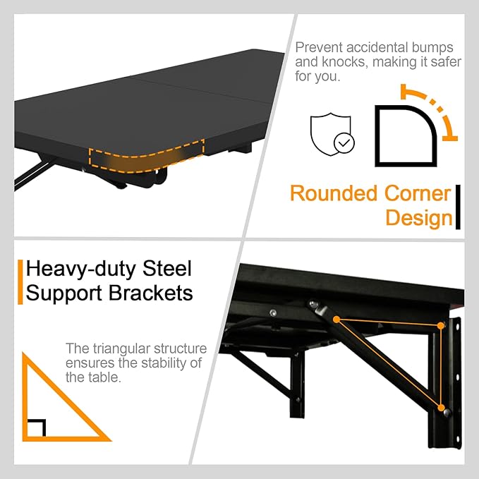 TEAMIX Wall Mounted Folding Table, Black Floating Desk for Small Spaces Laundry Shelf with Heavy Duty Brackets Floating Desk for Garage, Utility Room, Kitchen, Laundry Room