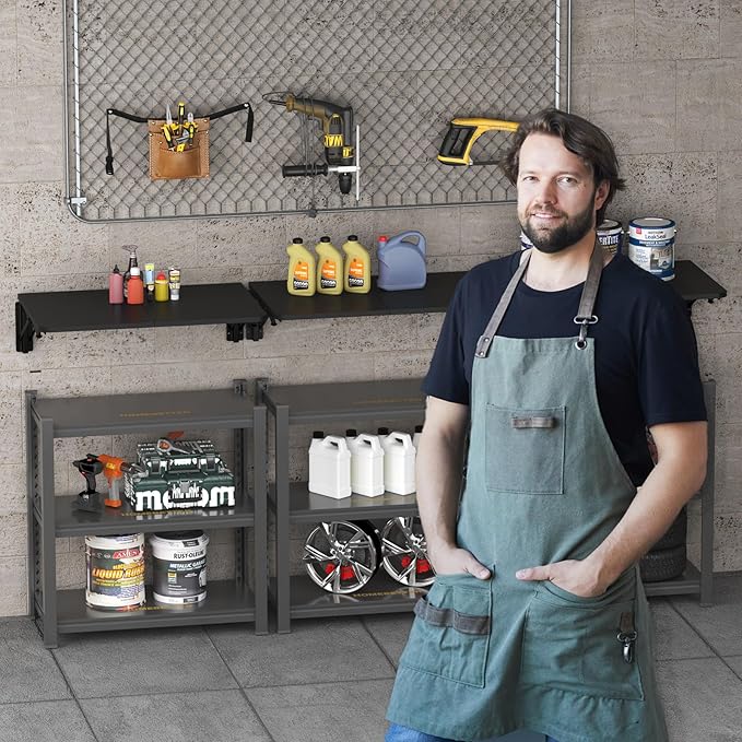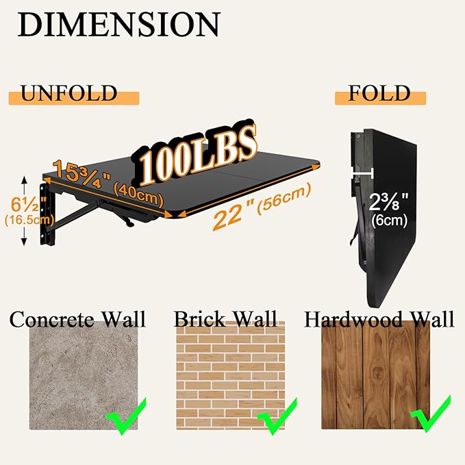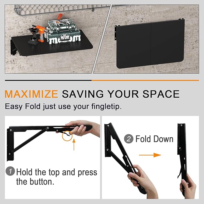 • 【Versatile and Expandable】 Add extra space to any room with this wall-mounted folding workbench, as a compact workstation or a computer table, ideal for garages, utility rooms, kitchens, and laundry rooms.