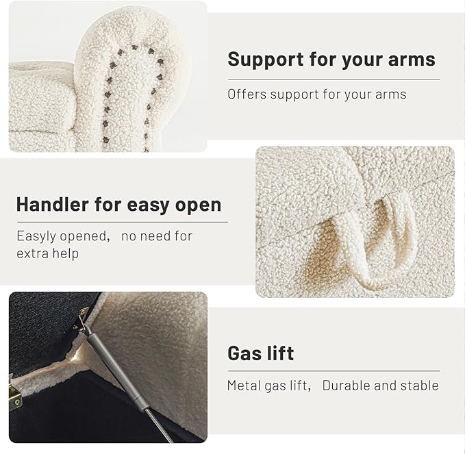 • ·Top-quality Planks&Sophisticated Mechanics: The ottoman bench frame made of multi-layer solid wood planks offers excellent breathability, durability, and support. The easy-lift and soft-close mechanism of the composite hinge and support arm structure ensures that the seat surface opens smoothly. It allows for easy and slow closure, providing a safe and effortless user experience.