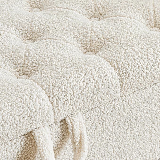 • ·Premium Material:The tufted bench cover is made of high quality sherpa, resistant to fading, static, and easy to clean. The upholstery features native sponge, offering a soft and comfortable feel that you will adore. It has excellent rebound speed and long-lasting support. The window seat is with a convenient weight for easy moving and placement, this piece can serve as a end of bed bench, a closet bench, an entryway shoe-changing ottoman, or a sofa footrest bench.