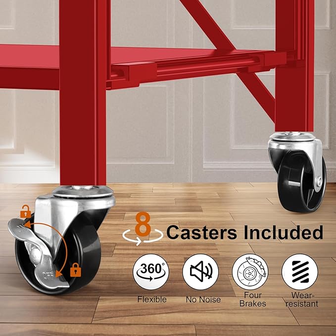 • 【360°Movable Storage Shelf Rack】The movable rolling shelf has 8 upgraded wheels (4 wheels with brakes) and 4 adjustable leveling feet. You can move the Holds 3600 pounds pantry shelves to any position you want, and move quietly.
