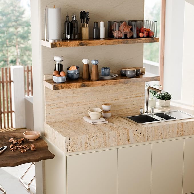 • Practical Storage Shelf: You can use it as fireplace mantel, kitchen shelf, living room shelf etc. Install above the fireplace and place decorations. Make the fireplace corner more cozy. You can also install it in the kitchen for storing condiments or various plates and cups. You can also have it in the living room for the display of your collection
