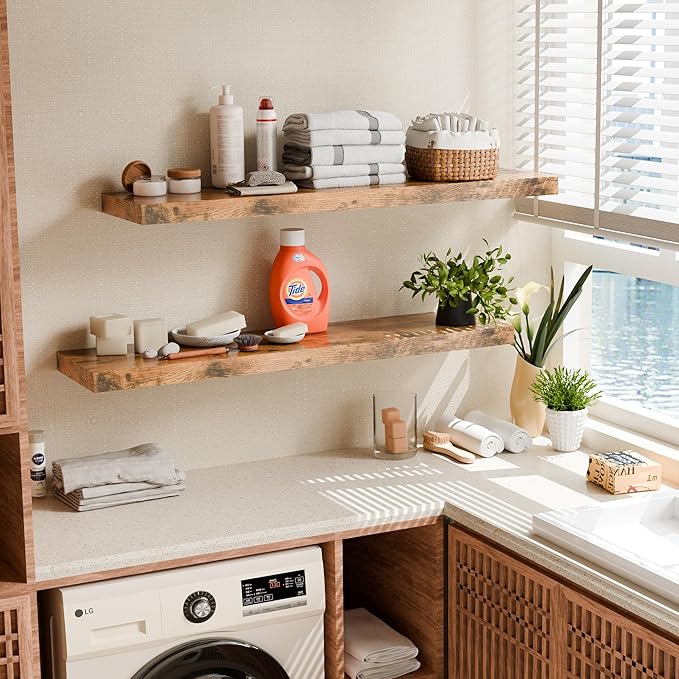 • Increase Storage Space: Set of 2 large floating shelves:47.2 inches long, 11.6 inches deep and 2 inches thick. It can greatly increase the utilization of your wall. According to your needs, install it in the occasion you need. Let's make your home more comfortable and neat
