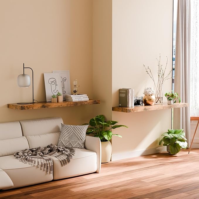 • Invisible Bracket Design: Our 12 inch deep floating shelves are designed with a hidden mounting system. You won't be able to see the extra supports as if they were growing out of the wall. The display shelves can be better integrated into the scene with this kind of design