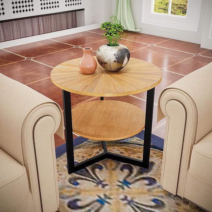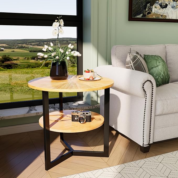 • Versatile Use: Ideal for any room in your home, this large round end table with two open storage shelves is a perfect addition to living rooms, bedrooms, reading nooks, offices, or reception areas. Lightweight and portable, it's great for leisure or work. Use it as a sofa side table, bedside table, snack table, laptop desk, lamp stand, or shelf. With its versatile functionality, this round end table allows you to create a thoughtful and chic narrative in your home design.