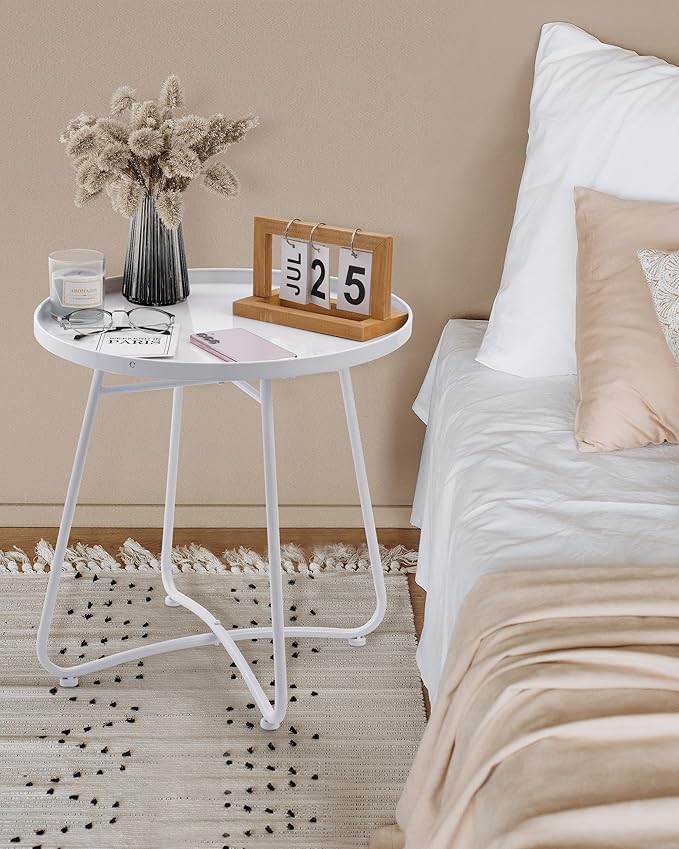 • Minimalist Design for Indoor Decor: The small round side table showcases a sleek, modern minimalist design with sturdy metal construction. Ideal as a coffee table in the living room, a nightstand in the bedroom, or a plant stand in the garden, it seamlessly complements any living space