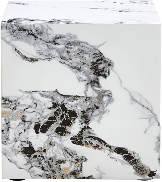 • MDF SOFA TABLE: The MDF frame provides essential stability and strength, ensuring a reliable surface for placing items without any wobbling. The use of MDF material, coupled with a faux marble finish process, not only contributes to its attractive appearance but also guarantees superior durability. The inclusion of foot pads prevents slips and protects your floor from scratches.The cube faux marble end table can hold up to 100 Lbs