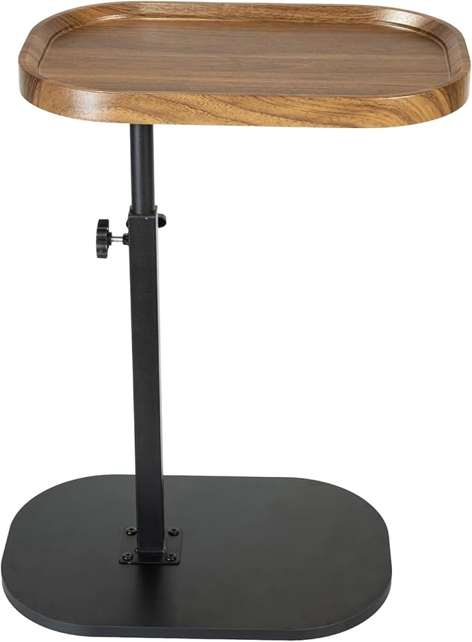 C Shaped End Table for Couch, Sofa Armrest Tray Table with Adjustable Height, 360° Swivel Sofa Bed Bathroom TV Tray for Living Room,Bed Side, Bedroom,Study and Small Spaces(Walnut Color)