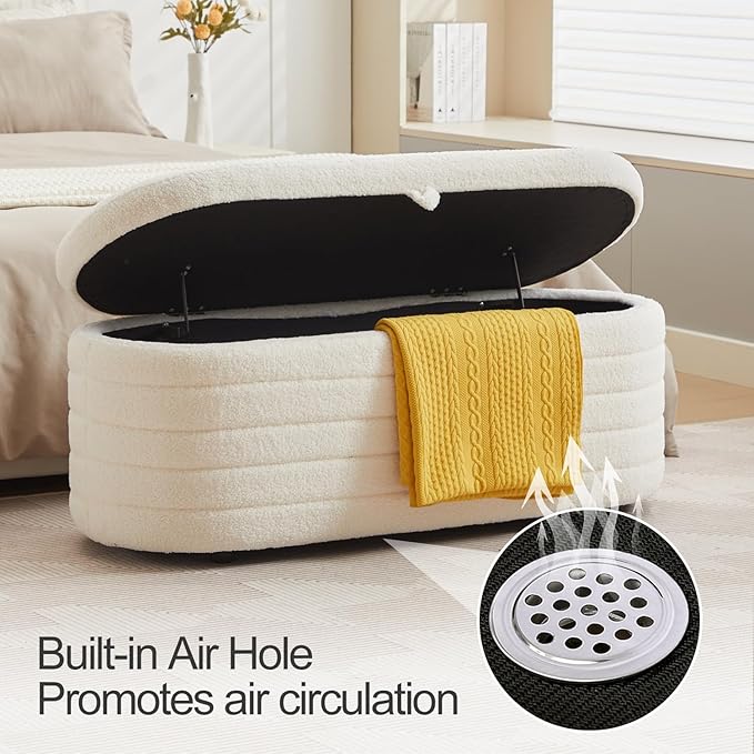 Storage Ottoman Bench End of Bed for Bedroom,45 inch Boucle Upholstered Entryway Shoe Seat Bench w/ Storage,Sherpa Modern Cute Padded Blanket Chest Stool Foot Rest for Living Room,Off-White