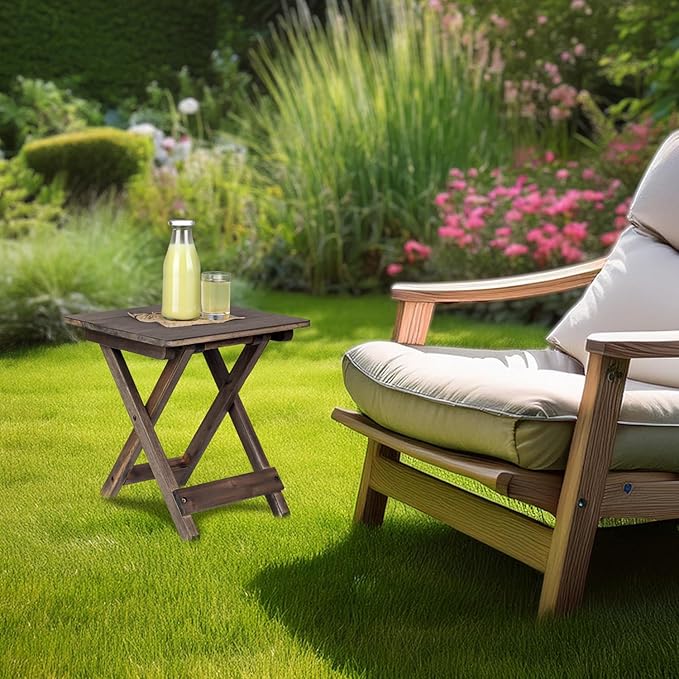 • DURABLE MATERIAL: The small outdoor folding table is made of 100% acacia wood - Acacia hardwood is known for its natural. The round side table is sanded down by hand, stained, and oiled for a natural, smooth finish; to prevent cracking, splitting, and not fade. Weighing in at only 3.96 pounds (1.8 kgs), this lightweight and certified solid wood table is durable and weather resistant.