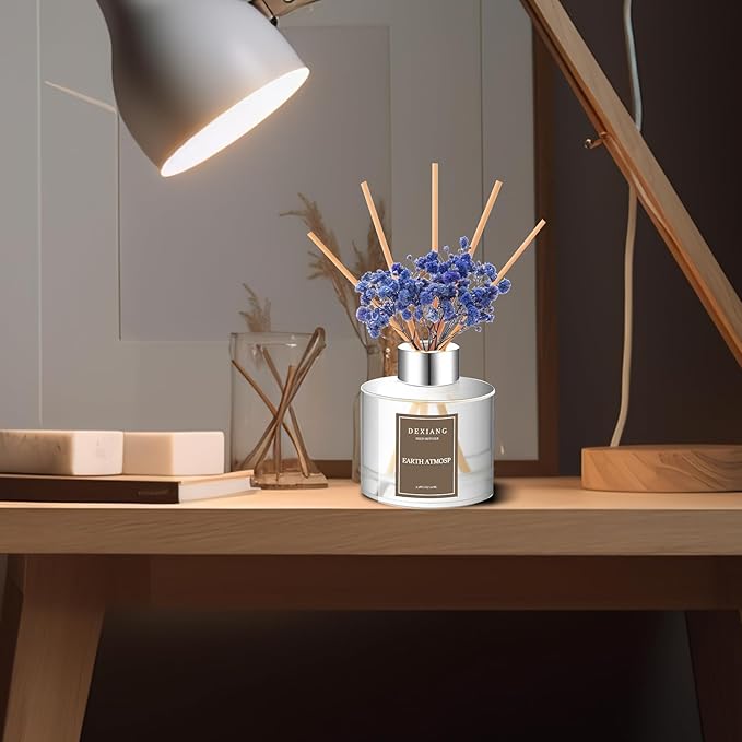 • Included:(l)A bottle of fragrance diffuser(2)3.38 ounces of scentedblend essential oils(3)A pack of real preserved baby's breath flowers (4)6pure cotton sticks You can choose to add or reduce the number of reed sticksto suit your taste.