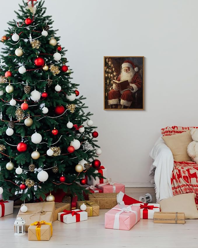 ARPEOTCY Framed Canvas Wall Art, Vintage Christmas Decor, Living Room Retro Santa Picture, Home Winter Decor for Bedroom Bathroom, Cottagecore Xmas Holiday Decorations Gifts, 12x16 Inch