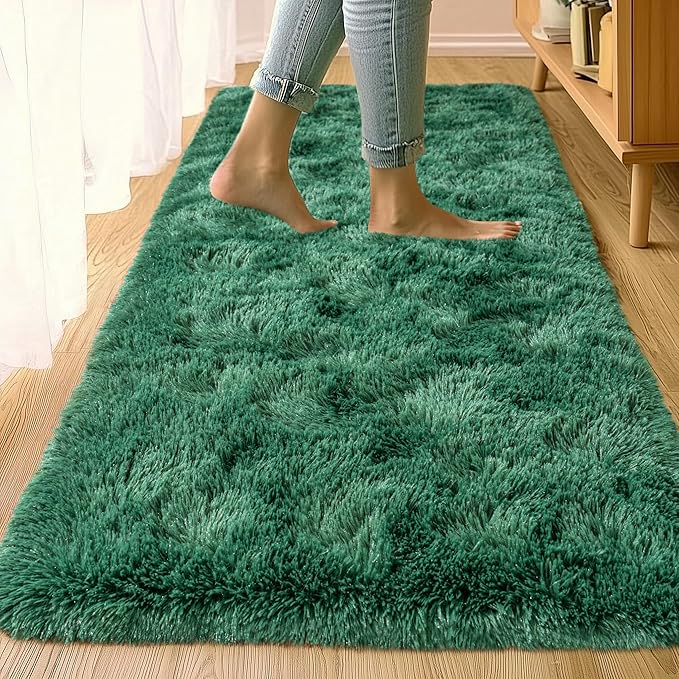 Fluffy Runner Rugs for Bedroom Hallways, 2x6 Runners for Hallways Fluffy Shag Throw Area Rug Non Slip for Bedside Dorm, Shag Rugs for Girls Boys Bedroom, Floor Carpet Runner for Kids Dorm, Dark Green