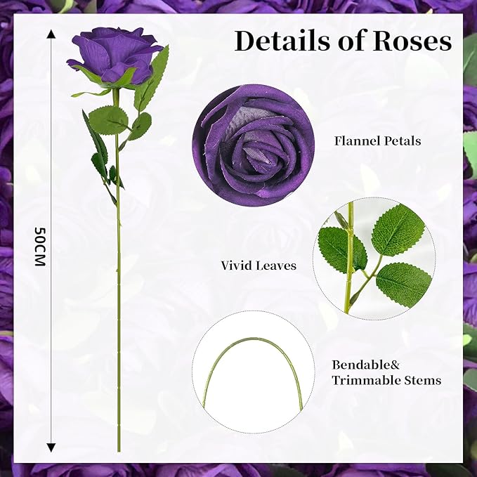 • 【Easy To Use】:The stem is flexible. According to your needs, it can be easily bent, cut, or pulled out. Very suitable for flower arrangement and decoration at Valentine's Day, Halloween, weddings decorations, birthday parties, holiday decorations, and any occasion.