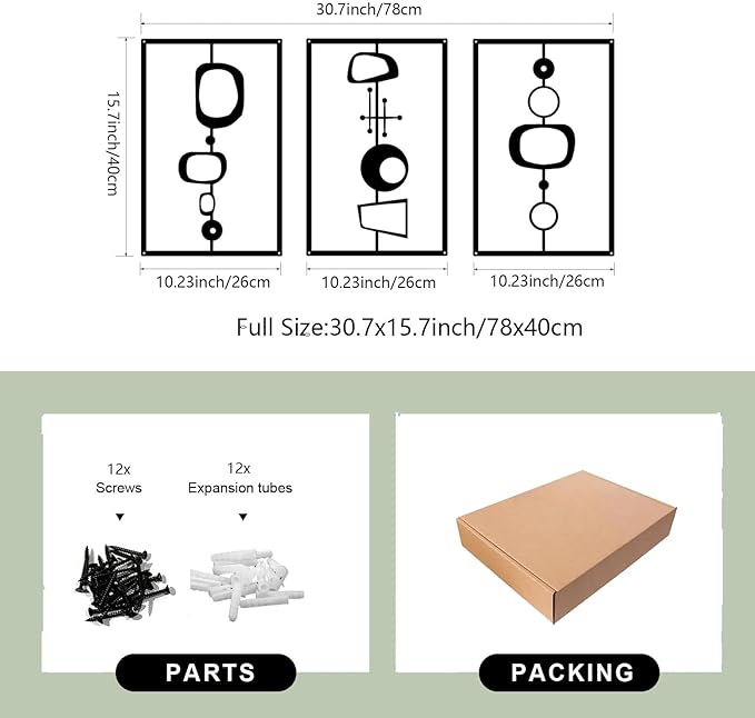 • [Unique Design] Metal Abstract Wall Art creates a 3D effect, The set comes with 12 screws, 12 expansion tubes for stable and smooth installation, seamlessly blending with your home decor.