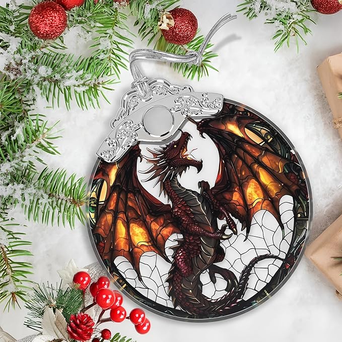 Stained Glass Flying Dragon Christmas Ornament - Holiday Home Decor - Tree Decoration - Gift Exchange Idea