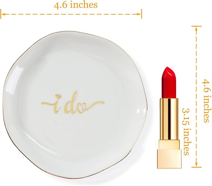 HOME SMILE I Do Ring Dish,Engagement Engaged Wedding Bridal Gifts for Newly Engaged Friend,Daughter, Sister,Newlyweds,BFF,Ceramic White