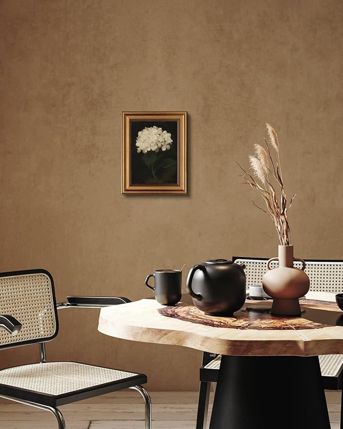 HUARCEY Gold Framed Vintage Wall Art for Living Room, Flowers Painting Canvas Prints Shelf Decor for Kitchen, Aesthetic Bedroom Wall Art, Christmas Gifts for Friends or Family (White Hydrangea 8"x10")