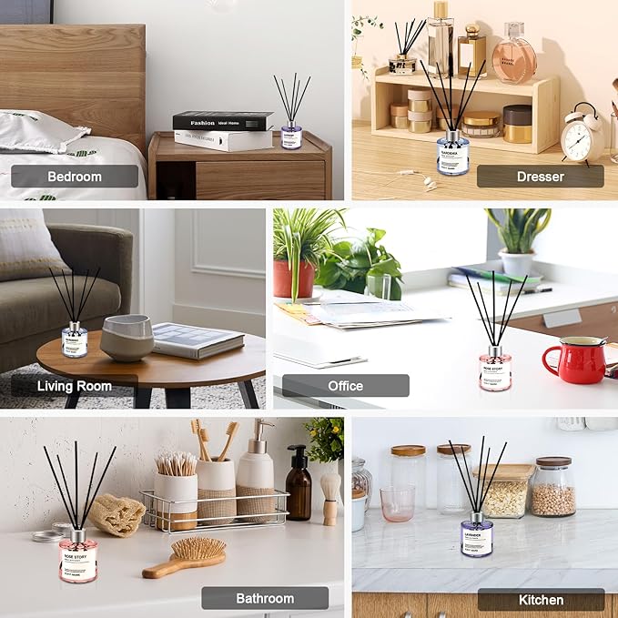 • Easy Scent Control: Each set of reed diffuser provides additional spare reeds, and you can increase or decrease the number of reed sticks according to your preferences to control the intensity of the scent