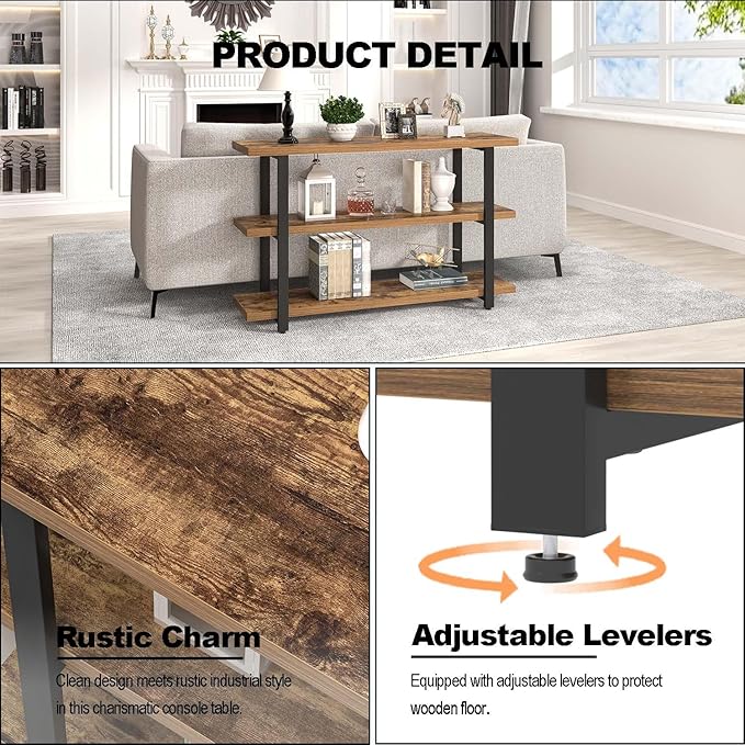 FOLUBAN Sofa Table, Wood Entryway Table with Storage Shelves for Living Room, Modern Console Tables for Hallway, Entrance, or Behind Couch, Rustic Brown, 47 Inch