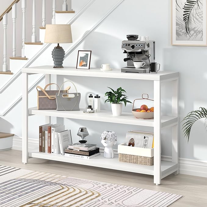 EXCEFUR Modern Entryway Table, Sofa Console Tables for Living Room, 3 Tier Foyer Table for Hallway, Behind Couch (47 Inch, White)