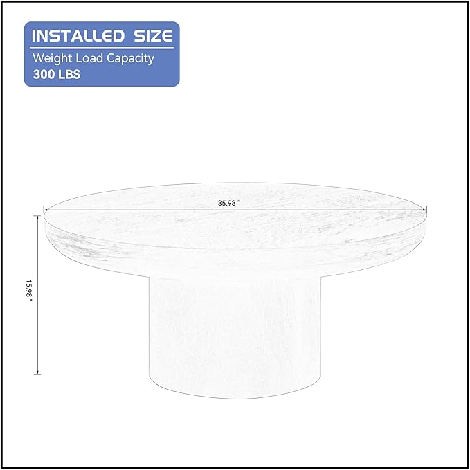 • ☕[35.98inch Large Surface] Coffee table size: 35.98"L*35.98"W*15.98"H, this round coffee table has a large practical area, the tabletop is spacious, providing plenty of room for you to place your favorite beverages or reading materials while relaxing on your couch.