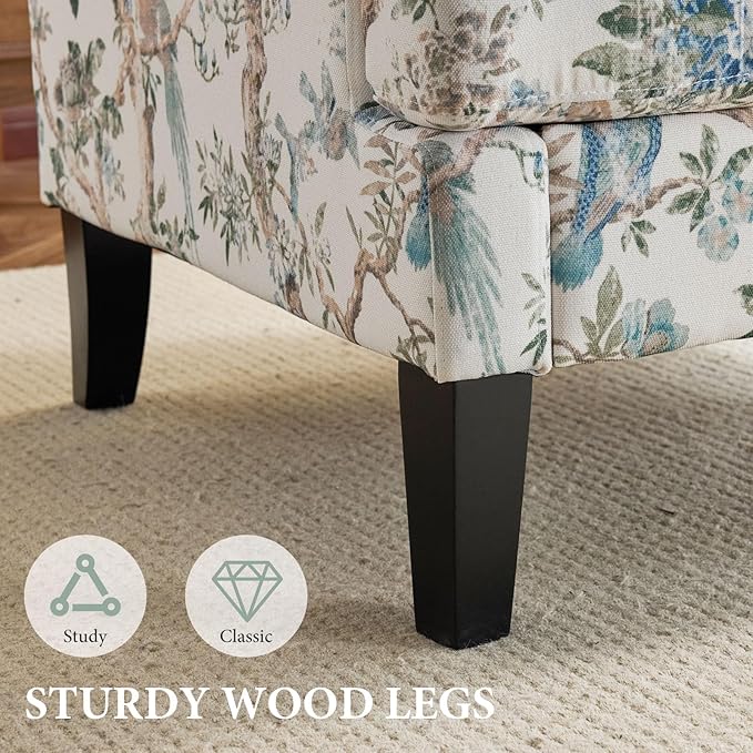 Bezseller Floral Accent Chair, Upholstered Reading Armchair with Wood Legs, Mid-Century Leisure Comfy Single Sofa Chair for Living Room, Bedroom, Home, Office, White Floral