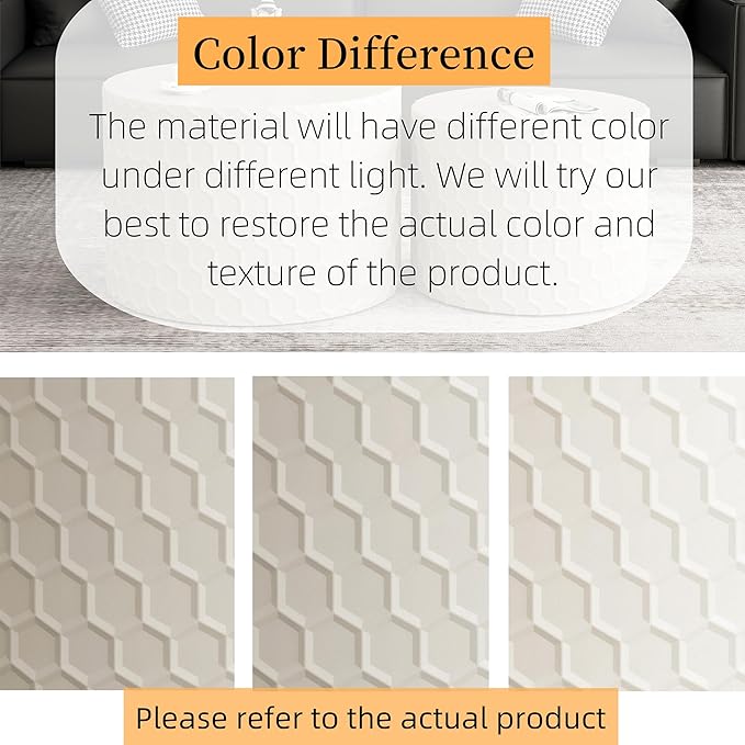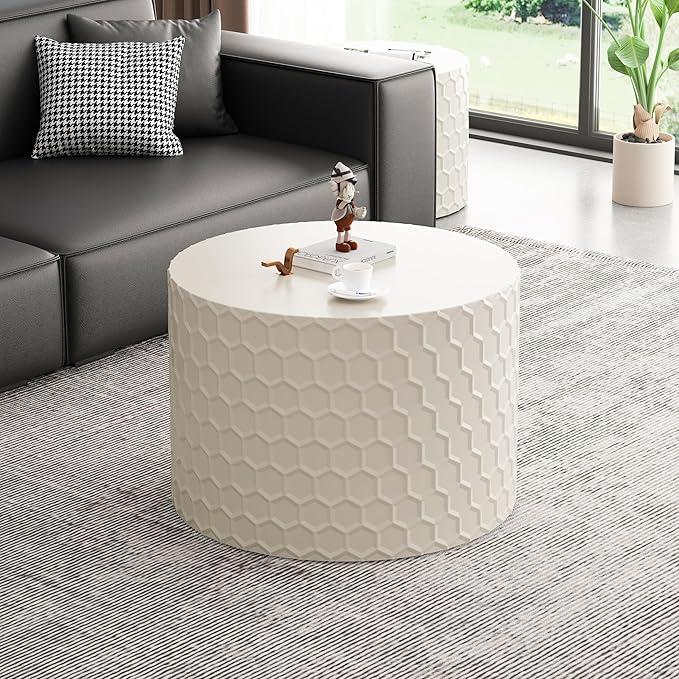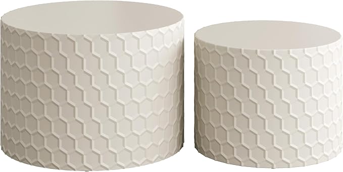 Kevinplus Round Nesting Coffee Table Set of 2, Modern Circle Drum Side Table for Living Room, Contemporary Coffee Table Set, No Assembly, White/Beige