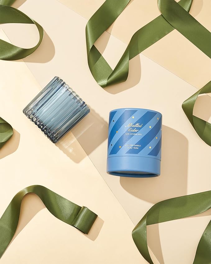 • Christmas Gift Box - This scented candle comes in an elegant packaging adorned with Christmas-themed strips and matching gold polka dots, creating a festive Christmas atmosphere. The striped glass candle jar is suitable for any home decoration. Place the gift box under the Christmas tree for an added touch of holiday charm.