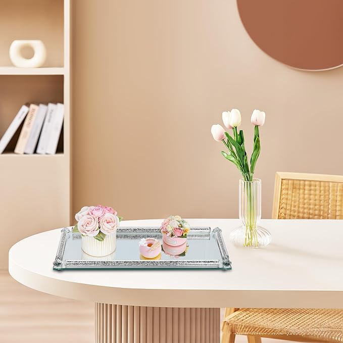 • [High Quality And Unique Stylish Design] - Our mirror trays have an elegant appearance and considerate design that fit many different style of scenario, brings fashionable grace element to you, meet requirement of modern beauty.it will be a very nice gift to a lady who loves to look at pretty things.Also it is suitable to send to your friends,family in festival or new house warming