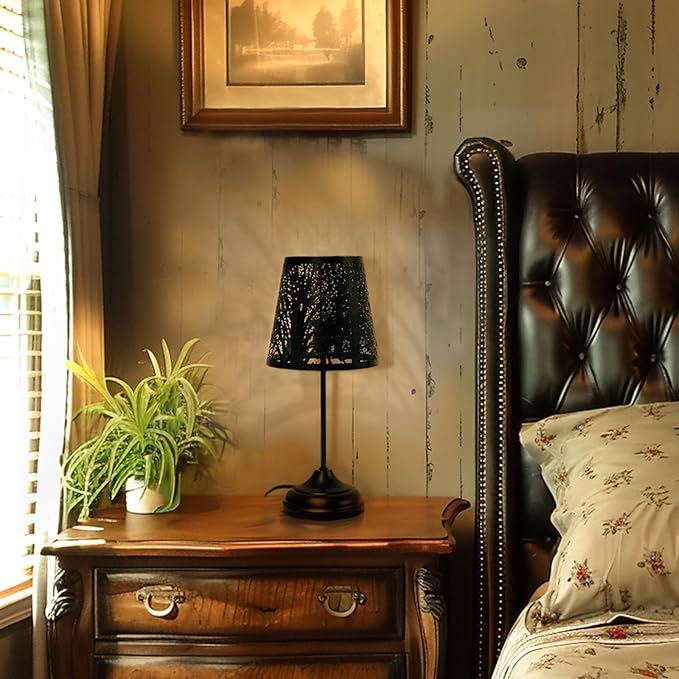 • 【Aesthetic of the Shadow】Touch table lamp features a unique hollow tree pattern that casts forest shadows in your room. An ideal art décor for decorating bedroom, guest room, living room, country cottage or farmhouse. Vintage lamp design adds a retro element to your lighting collection.