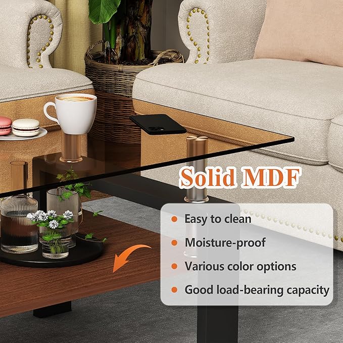 • Premium Construction Materials – Crafted with a durable tempered glass top, MDF wood shelf, and a stable metal frame, this glass coffee table combines strength with modern elegance for everyday use