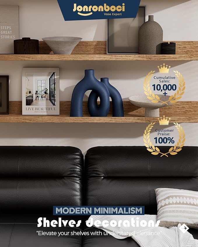 Hug Donut Decorative Vase Set - Navy Blue Vase, Modern Coastal Style Vases Home Decor, Matte Ceramic Decorations for Living Room Shelf, Bookshelf Mantle Entryway Table or Console Décor (Navy Blue)