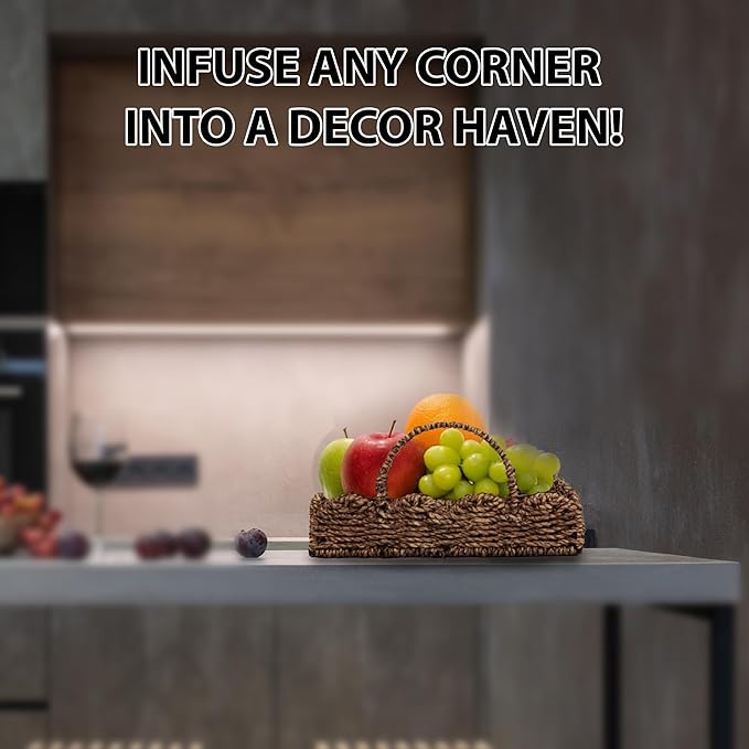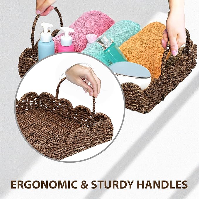 • 𝐅𝐮𝐧𝐜𝐭𝐢𝐨𝐧𝐚𝐥 𝐁𝐚𝐬𝐤𝐞𝐭 𝐓𝐫𝐚𝐲 𝐰𝐢𝐭𝐡 𝐇𝐚𝐧𝐝𝐥𝐞𝐬: This basket tray with handles is built for easy carrying indoors and outdoors. Use it as a serving tray, coffee tray, or table tray for snacks, drinks, and decorative items with comfort and ease.