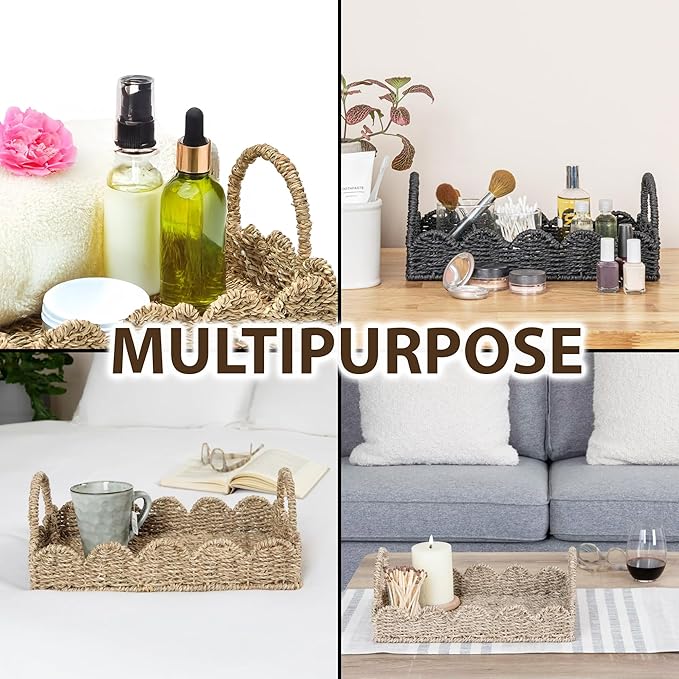 • 𝐃𝐞𝐜𝐨𝐫𝐚𝐭𝐢𝐯𝐞 𝐓𝐫𝐚𝐲 𝐟𝐨𝐫 𝐎𝐭𝐭𝐨𝐦𝐚𝐧 & 𝐋𝐢𝐯𝐢𝐧𝐠 𝐒𝐩𝐚𝐜𝐞: Place this decorative serving tray on your ottoman, console, or entryway to organize books, candles, and remote controls. Also ideal as a scalloped serving tray or rectangle tray for home decor.