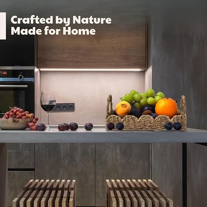 • 𝐇𝐚𝐧𝐝𝐰𝐨𝐯𝐞𝐧 𝐒𝐞𝐚𝐠𝐫𝐚𝐬𝐬 𝐓𝐫𝐚𝐲 – 𝐍𝐚𝐭𝐮𝐫𝐚𝐥 & 𝐃𝐮𝐫𝐚𝐛𝐥𝐞: This seagrass tray is skillfully handwoven over a sturdy steel frame, offering a premium woven tray look with natural texture. Its organic shape and material elevate your home decor while ensuring strength and durability.
