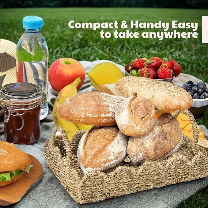 • 𝐅𝐮𝐧𝐜𝐭𝐢𝐨𝐧𝐚𝐥 𝐁𝐚𝐬𝐤𝐞𝐭 𝐓𝐫𝐚𝐲 𝐰𝐢𝐭𝐡 𝐇𝐚𝐧𝐝𝐥𝐞𝐬: This basket tray with handles is built for easy carrying indoors and outdoors. Use it as a serving tray, coffee tray, or table tray for snacks, drinks, and decorative items with comfort and ease.