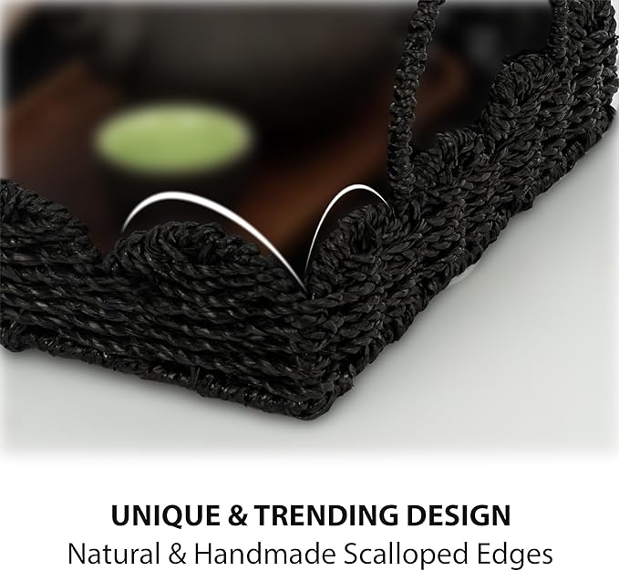 • 𝐆𝐢𝐟𝐭-𝐑𝐞𝐚𝐝𝐲 𝐁𝐚𝐬𝐤𝐞𝐭 𝐟𝐨𝐫 𝐄𝐯𝐞𝐫𝐲 𝐎𝐜𝐜𝐚𝐬𝐢𝐨𝐧: Measuring 14" x 10" x 2.16", this brown wicker basket tray makes a thoughtful gift for birthdays, weddings, or holidays. A trending mud pie scalloped tray alternative that works as a Christmas tray for coffee table or small wicker tray for any space.