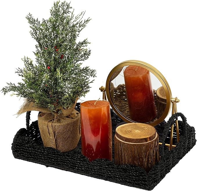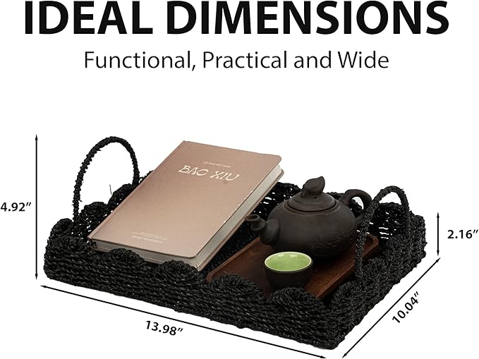 • 𝐇𝐚𝐧𝐝𝐰𝐨𝐯𝐞𝐧 𝐒𝐞𝐚𝐠𝐫𝐚𝐬𝐬 𝐓𝐫𝐚𝐲 – 𝐍𝐚𝐭𝐮𝐫𝐚𝐥 & 𝐃𝐮𝐫𝐚𝐛𝐥𝐞: This seagrass tray is skillfully handwoven over a sturdy steel frame, offering a premium woven tray look with natural texture. Its organic shape and material elevate your home decor while ensuring strength and durability.