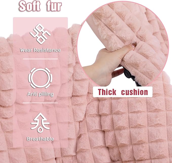 HollyHOME X-Large Saucer Chair, Comfy Oversized Folding Chair, Faux-Fur Reading Chair for Teens, Adults, Foldable Accent Lazy Chair, Metal Lounge Chair for Living Room, Bedroom, Dorm, Grid Pink