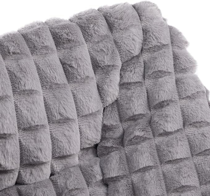 HollyHOME X-Large Saucer Chair with Foldable Ottoman, Comfy Oversized Folding Chair and Folding Footrest Stool Set, Faux-Fur Reading Chair and Footstool for Living Room, Blue&Grey Chair&Stool