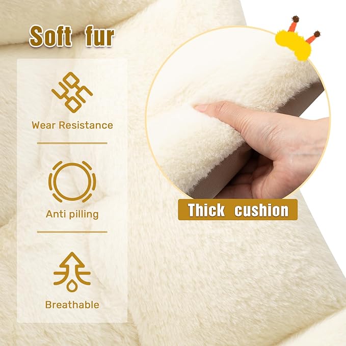 HollyHOME X-Large Saucer Chair with Foldable Ottoman, Comfy Oversized Folding Chair and Folding Footrest Stool Set, Faux-Fur Reading Chair and Footstool for Living Room, Bedroom, Beige Chair&Stool
