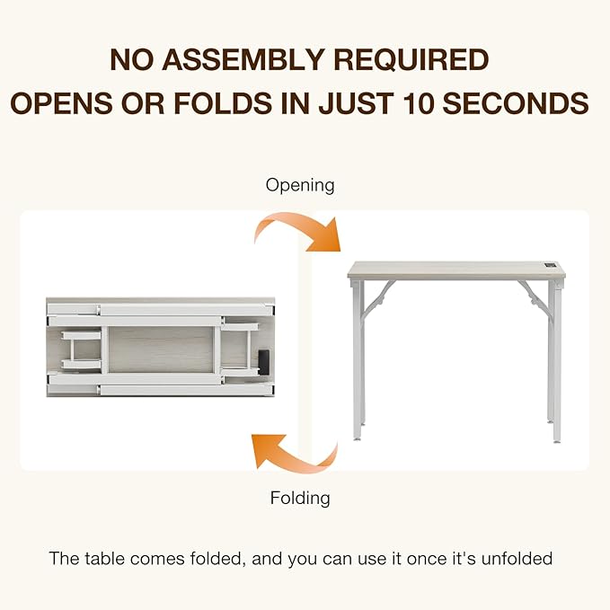 • 👍𝗡𝗢 𝗔𝗦𝗦𝗘𝗠𝗕𝗟𝗬 𝗥𝗘𝗤𝗨𝗜𝗥𝗘𝗗 - 𝗥𝗘𝗔𝗗𝗬 𝗧𝗢 𝗨𝗦𝗘 — Enjoy the convenience of a folding table that arrives fully assembled. With an integrated design of both desk surface and frame, simply open the box, unfold, and start using immediately—perfect for those who value simplicity and time.