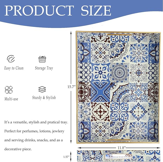 • Versatile & Stylish Design: Spsyrine serving tray with handles is perfect for any setting – from coffee tables to kitchen counters and ottomans. Use it for decoration, serving, or as a centerpiece